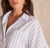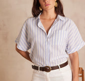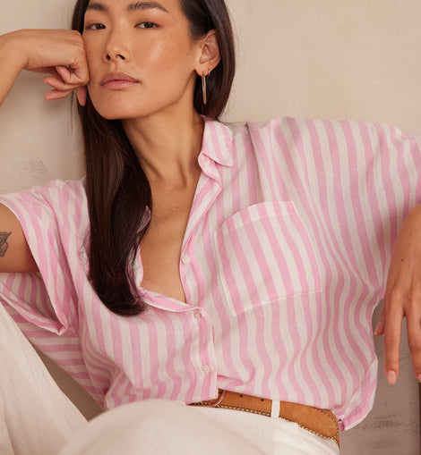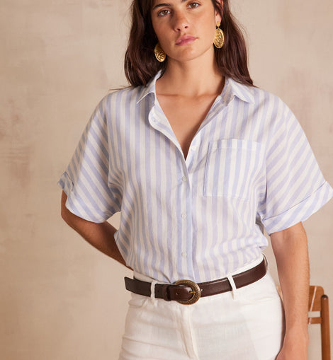 Craquez pour SUNSET, notre chemisier en pur coton aux rayures raffinées.
