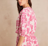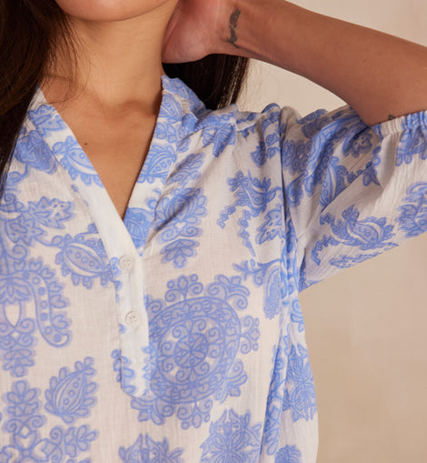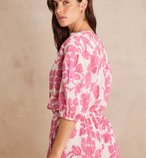 Craquez pour SUN, notre blouse en coton pur aux imprimés fleuris.