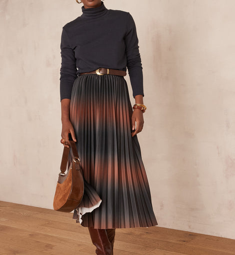 Laissez-vous séduire par DARCY, notre nouvelle jupe plissée au style raffiné. Sa coupe fluide et son plissé élégant en font une pièce intemporelle de votre garde-robe.