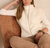Craquez pour BRIAN, notre gilet sans manches en maille bouclette confectionné en alpaga et laine. Sa texture douce et son style contemporain en font une pièce incontournable de votre garde-robe.