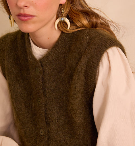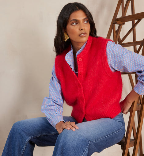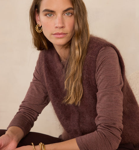Craquez pour LOULOU, notre gilet en mohair à la douceur incomparable. Sa matière noble et sa coupe sans manches en font une pièce élégante et facile à porter.