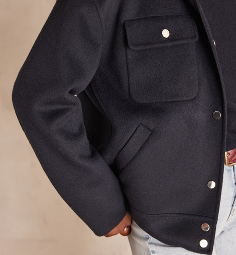 Craquez pour DOLINE, notre blouson double face en laine. Une pièce intemporelle qui allie élégance et confort pour un style affirmé.