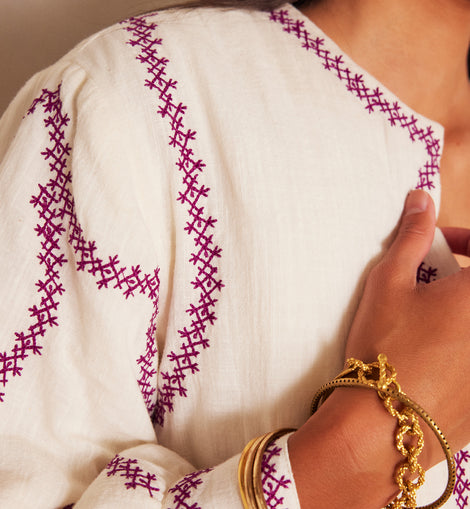 Coup de cœur pour POLLY, notre veste en coton rehaussée de délicates broderies qui lui confèrent un charme unique.