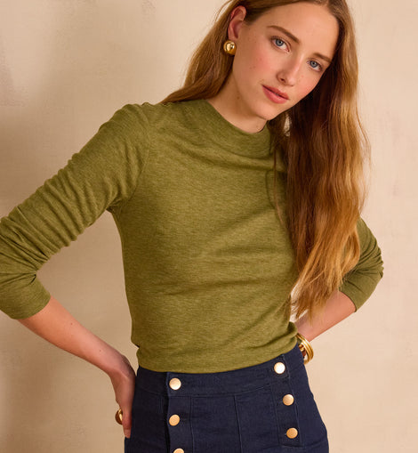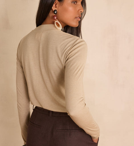 Découvrez FLYNN, notre nouveau t-shirt au col montant élégant. On craque pour ses manches longues et sa touche de soie qui lui apporte une douceur incomparable.