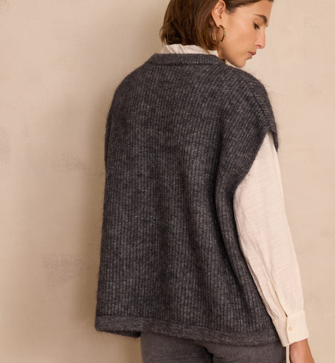 Laissez-vous séduire par BOHEME, notre pull cape en mohair au style contemporain. Sa silhouette ample et élégante apporte une touche sophistiquée à vos tenues d'hiver.