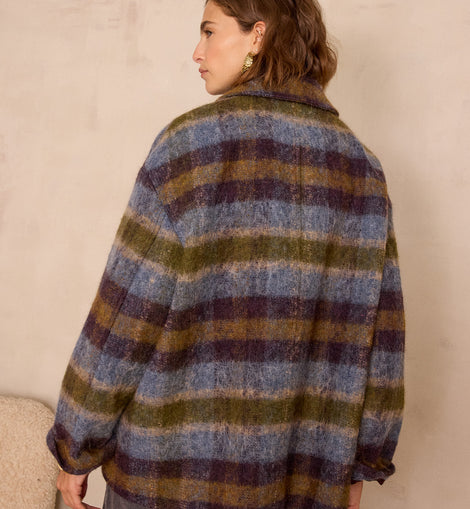 • MANTEAU MI-LONG DANNY EN LAINE À CARREAUX