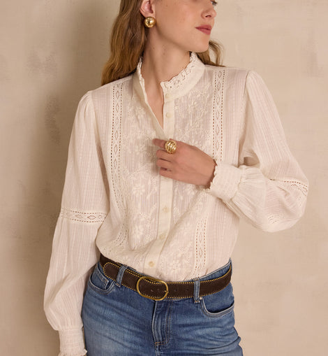 Craquez pour SOPHIA, notre blouse en coton brodée qui allie élégance et naturel.