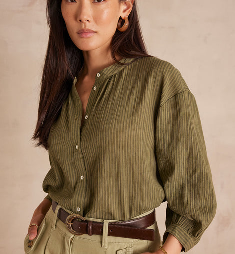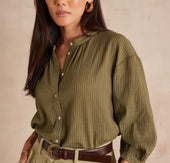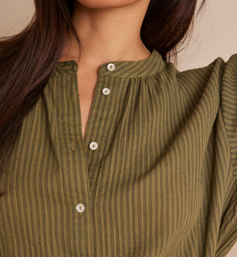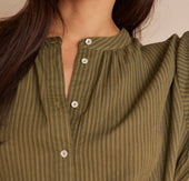 Laissez-vous séduire par SIGRID, notre nouvelle blouse en coton. Ses rayures élégantes et sa broderie délicate lui confèrent un charme intemporel.