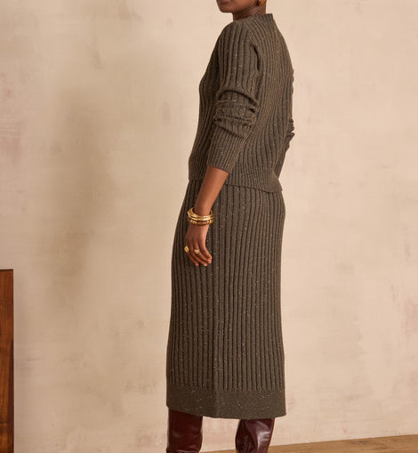 Laissez-vous séduire par EMMA, notre jupe longue en maille au style contemporain. Sa silhouette élégante et sa maille mouchetée en font une pièce aussi confortable que tendance.