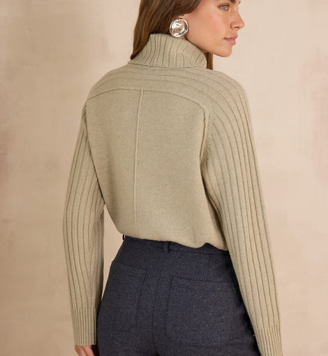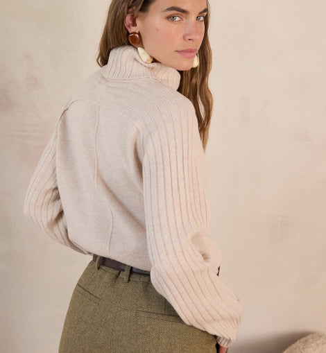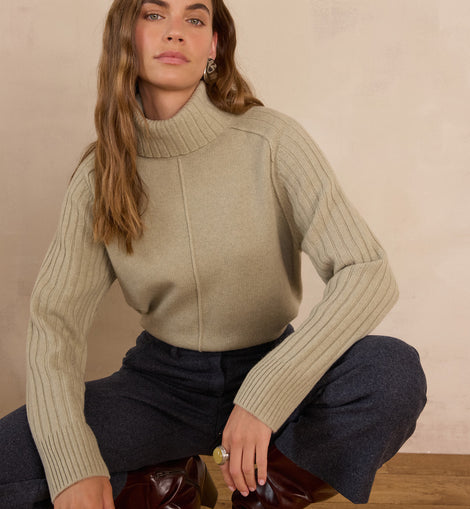 Craquez pour BLAISE, notre pull en laine RWS et yak. Un modèle intemporel au col roulé côtelé qui allie confort et élégance grâce à ses matières nobles.