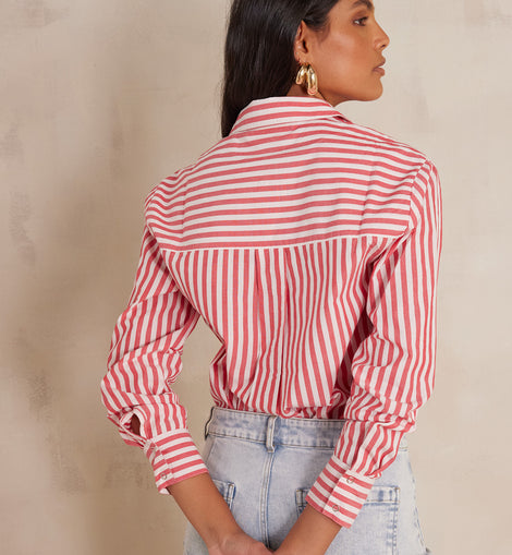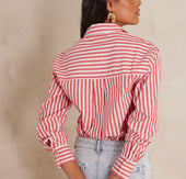 Craquez pour SAMY, notre chemisier à rayures qui apporte une touche de féminité à votre garde-robe. Ses rayures graphiques et sa coupe moderne en font une pièce incontournable de la saison.