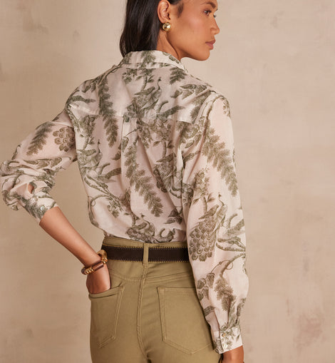 Coup de cœur pour COLETTE, notre blouse en coton à l'imprimé organique aux couleurs douces de cette saison.