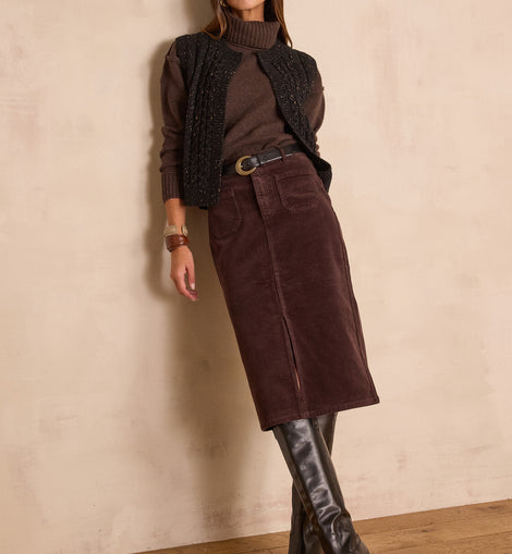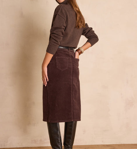 JUPE DROITE CLEO EN VELOURS CÔTELÉ