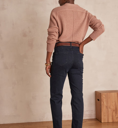 Découvrez LOU, notre jean slim en denim au style intemporel. Sa coupe ajustée sublime la silhouette pour un look à la fois chic et décontracté.