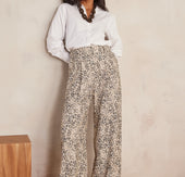 Découvrez FLAUBERT, ce pantalon qui allie élégance et modernité avec sa coupe large et son imprimé animal tendance.