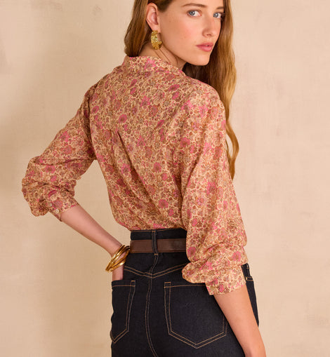 Craquez pour COLETTE, notre chemisier en coton orné d'un délicat imprimé liberty. Sa matière 100% naturelle vous garantit un confort optimal au quotidien.