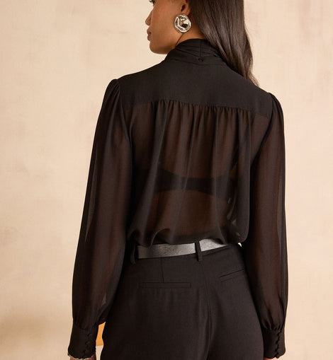 Découvrez SPIRIT, notre nouvelle blouse à lavalière qui apporte une touche d'élégance à toutes vos tenues. Sa coupe fluide et son col à nouer vous permettent de varier les styles, du plus sage au plus sophistiqué.