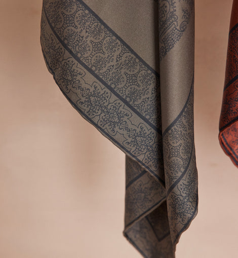 Laissez-vous séduire par TESSA, notre carré en soie aux imprimés raffinés. Sa matière noble et fluide apporte une touche d'élégance à toutes vos tenues.