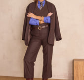 Craquez pour MELINA, notre pantalon en laine à rayures qui allie élégance et style contemporain. Sa coupe large et sa longueur cropped en font une pièce tendance et facile à porter.