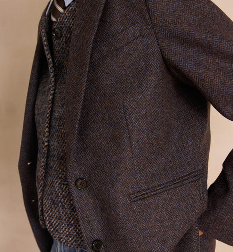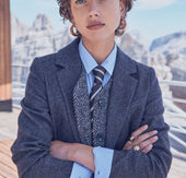 Craquez pour COURTNEY, notre veste tailleur en laine aux motifs chevrons. Cette pièce intemporelle allie élégance et sophistication pour un look professionnel impeccable.