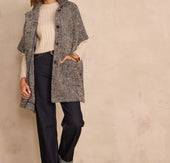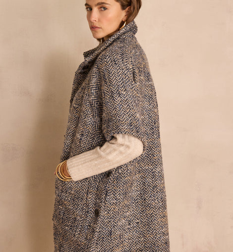 Laissez-vous séduire par AGNES, notre cape élégante ornée d'un motif chevrons intemporel. Une pièce sophistiquée qui apporte une touche de raffinement à vos tenues.