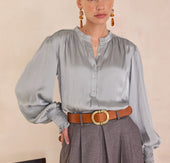 • BLOUSE SATINÉE À MANCHES BOUFFANTES DEESSE