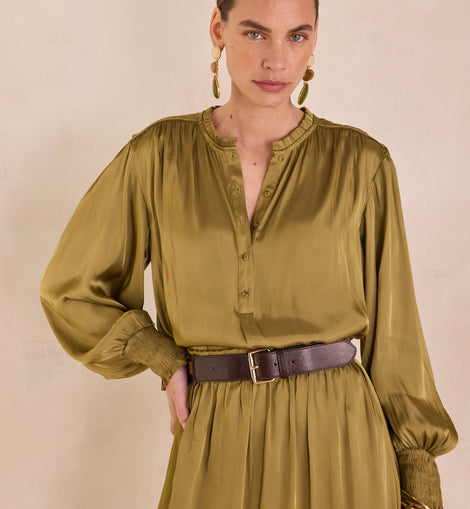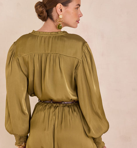BLOUSE SATINÉE À MANCHES BOUFFANTES DEESSE