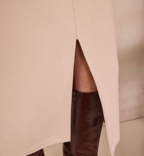 Découvrez OLIVIA, notre jupe crayon en laine double face au style intemporel. Sa coupe entravée et sa fermeture zippée lui confèrent une allure sophistiquée et féminine, parfaite pour vos tenues professionnelles comme pour vos sorties.